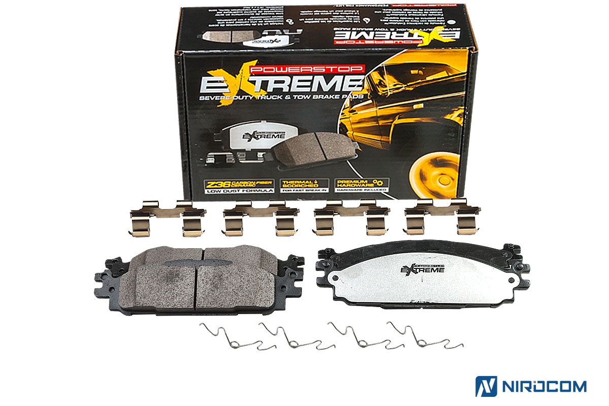 Керамические колодки с углеродными волокнами PowerStop Z36 сделаны для тяжёлых грузовиков и внедорожников. Колодки обеспечивают мощный захват, показывая высокую производительность и при этом сильно не нагреваясь. Состав колодок Z36 позволяет осуществлять торможение без лишнего шума и пыли. Коэффициент трения на 17% выше, чем у колодок OE.