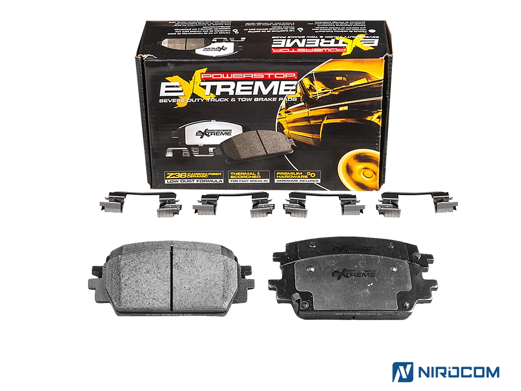 Керамические колодки с углеродными волокнами PowerStop Z36 сделаны для тяжёлых грузовиков и внедорожников. Колодки обеспечивают мощный захват, показывая высокую производительность и при этом сильно не нагреваясь. Состав колодок Z36 позволяет осуществлять торможение без лишнего шума и пыли. Коэффициент трения на 17% выше, чем у колодок OE.