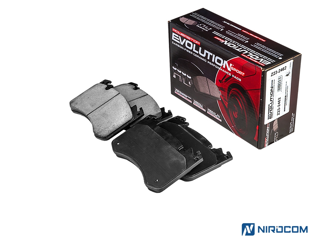 Power Stop Evolution Z23 – это керамический состав, укрепленный углеродными (карбоновыми) волокнами. На практике это высокотемпературная колодка, стойкая к износу, с повышенным коэффициентом трения