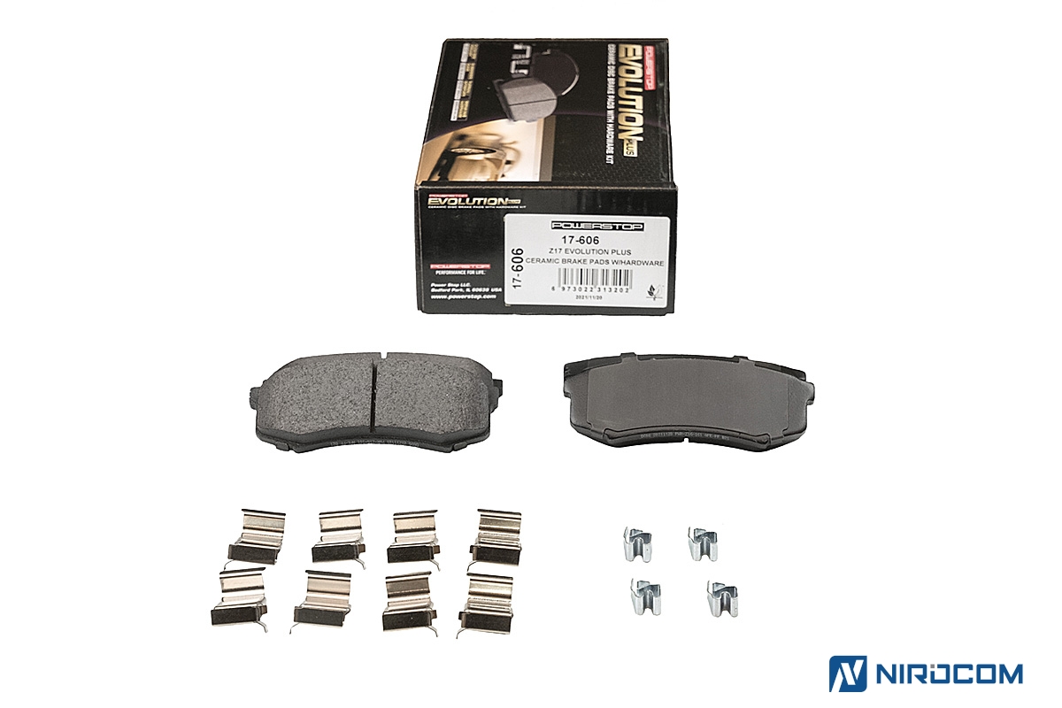 Колодки PowerStop представляют собой специально разработанный керамический состав Evolution, обеспечивающий незначительное образование пыли и очень низкий уровень шума при торможении. Данный состав ориентирован на автомобили имеющих большую массу, таких как внедорожники, кроссоверы и автомобили представительского класса. Тормозные системы таких автомобилей испытывают особенные температурные и динамические нагрузки. Также в комплекте с колодками поставляется специальная фурнитура для простой установки в суппорт. Керамические тормозные колодки PowerStop Z17, по сравнению с обычной органикой (а 95% тормозных колодок на европейском рынке именно органические), очень устойчивы к высоким температурам и трению. При этом принадлежат к классу «стрит»: имеют невысокое содержание керамики, а следовательно, не требуют дополнительного прогрева.