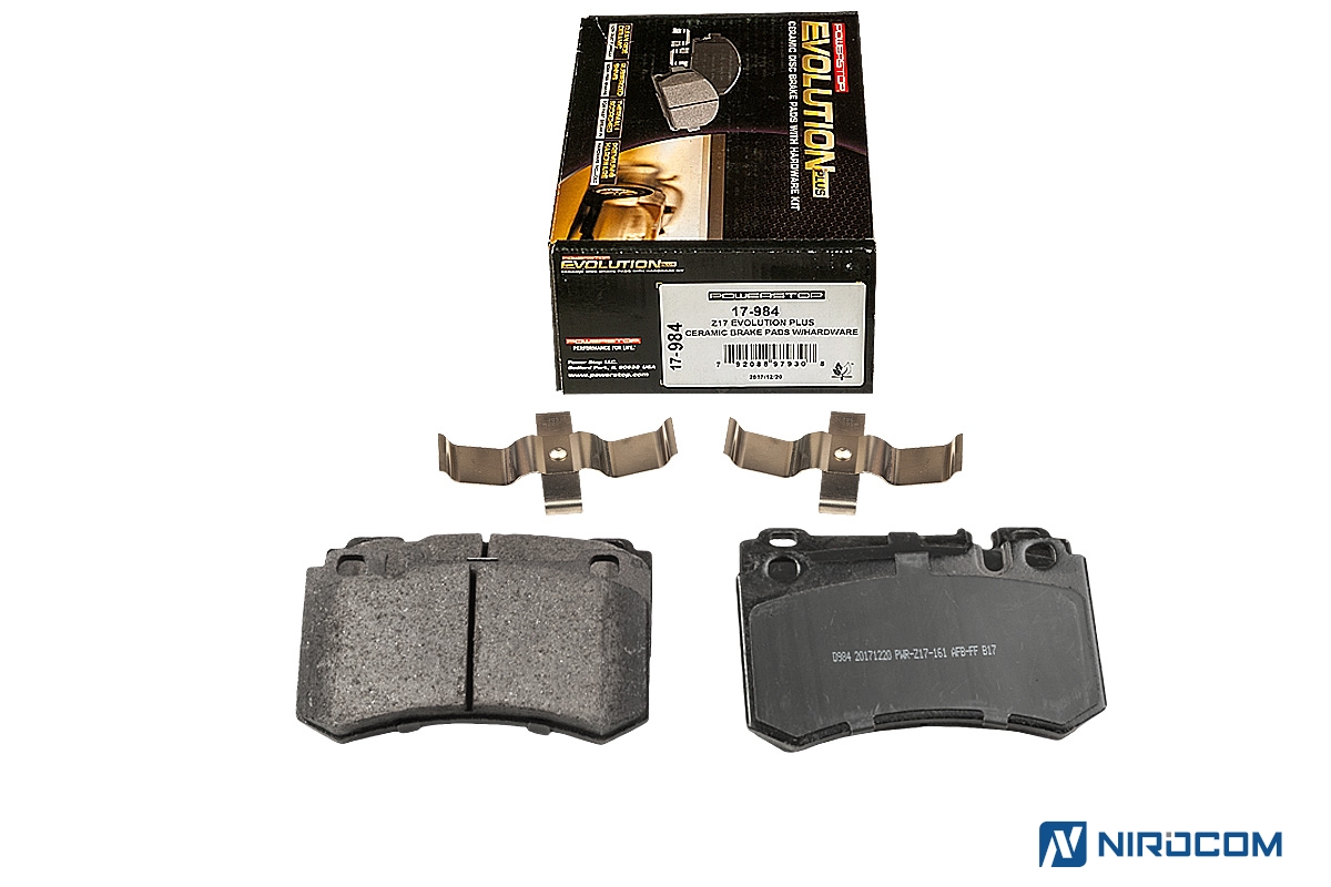 Колодки PowerStop представляют собой специально разработанный керамический состав Evolution, обеспечивающий незначительное образование пыли и очень низкий уровень шума при торможении. Данный состав ориентирован на автомобили имеющих большую массу, таких как внедорожники, кроссоверы и автомобили представительского класса. Тормозные системы таких автомобилей испытывают особенные температурные и динамические нагрузки. Также в комплекте с колодками поставляется специальная фурнитура для простой установки в суппорт. Керамические тормозные колодки PowerStop Z17, по сравнению с обычной органикой (а 95% тормозных колодок на европейском рынке именно органические), очень устойчивы к высоким температурам и трению. При этом принадлежат к классу «стрит»: имеют невысокое содержание керамики, а следовательно, не требуют дополнительного прогрева.