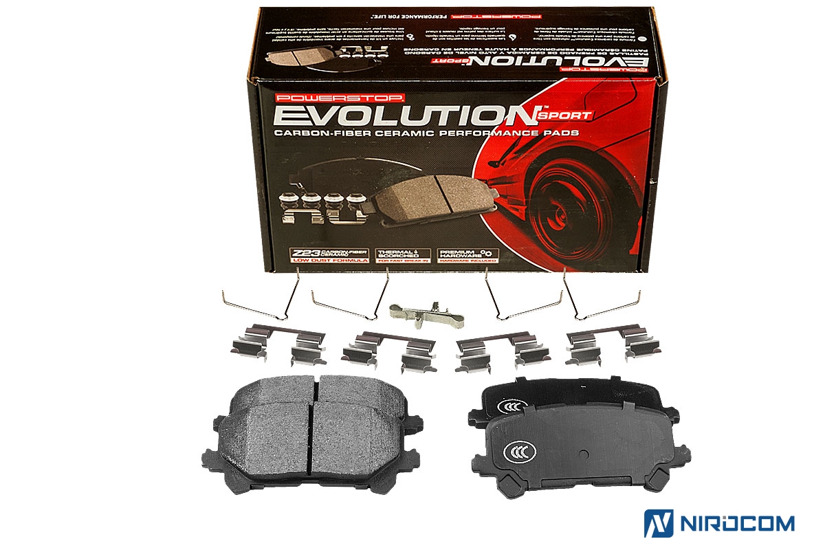 Power Stop Evolution Z23 – это керамический состав, укрепленный углеродными (карбоновыми) волокнами. На практике это высокотемпературная колодка, стойкая к износу, с повышенным коэффициентом трения