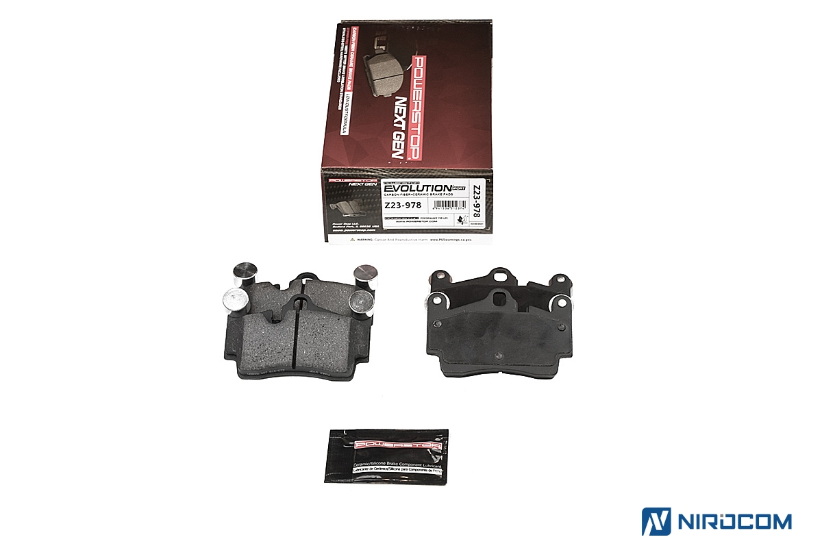 Power Stop Evolution Z23 – это керамический состав, укрепленный углеродными (карбоновыми) волокнами. На практике это высокотемпературная колодка, стойкая к износу, с повышенным коэффициентом трения