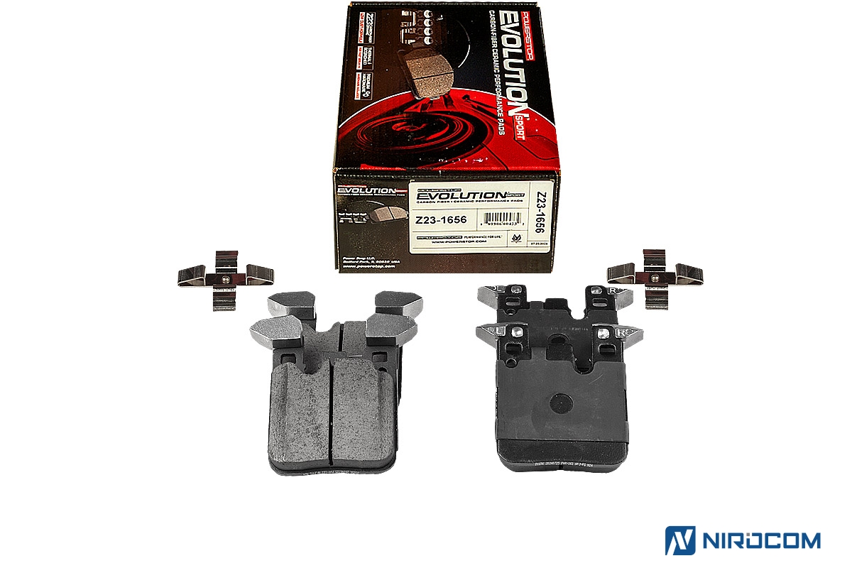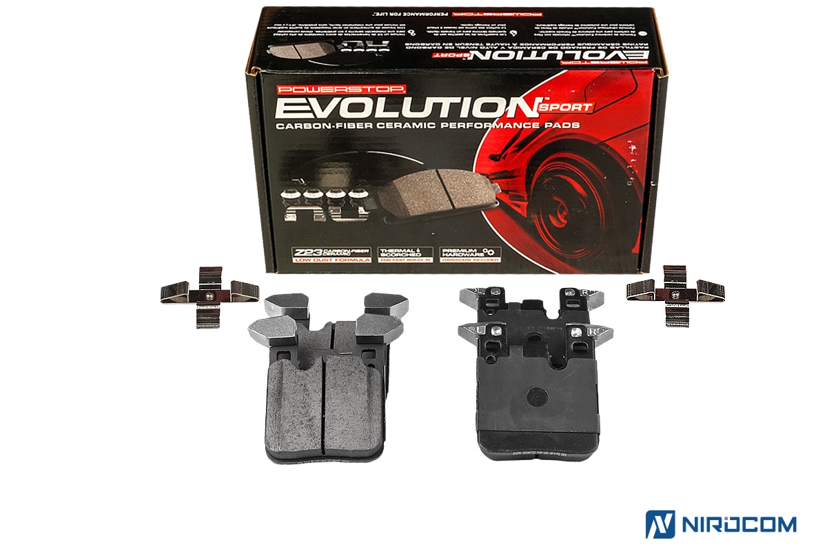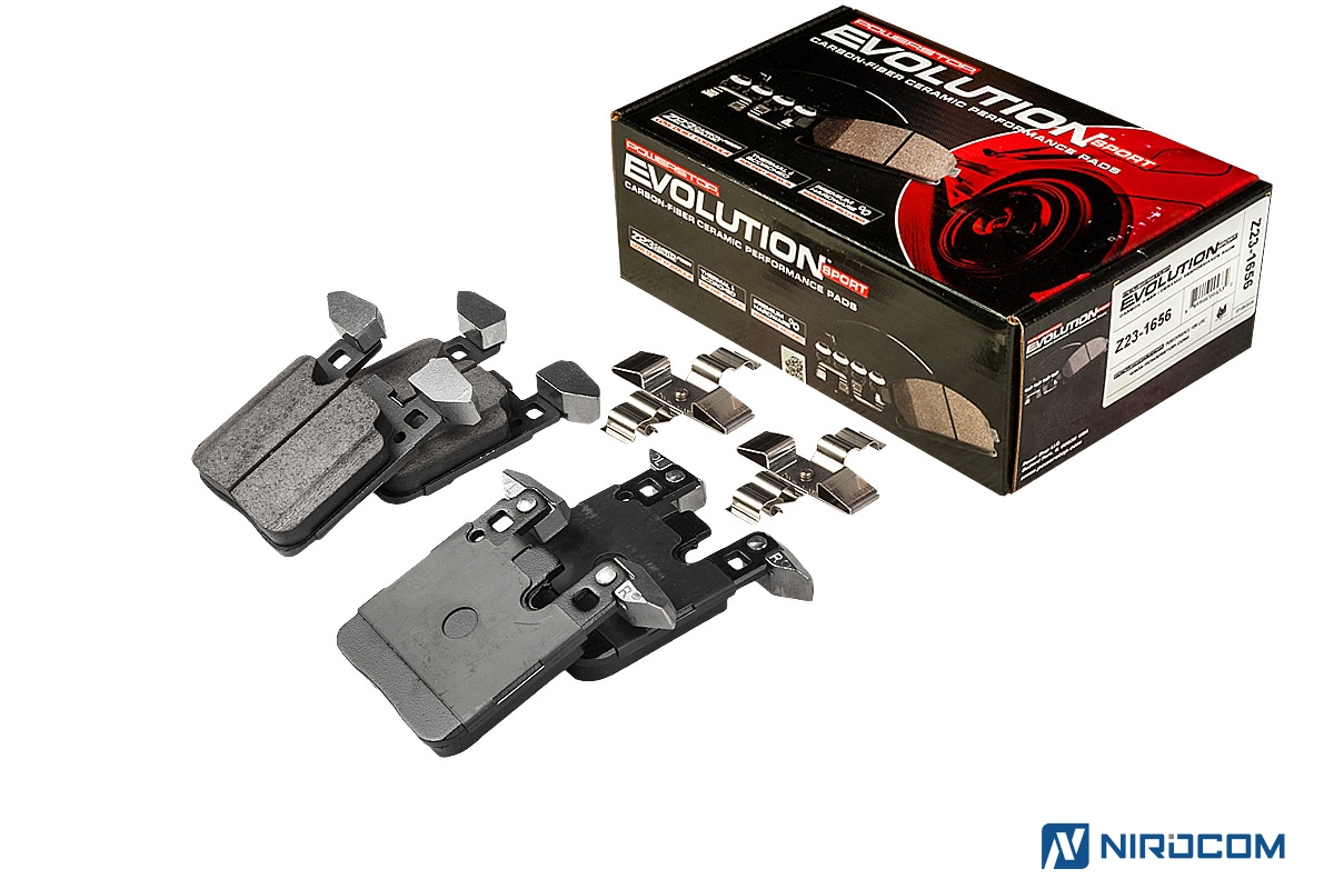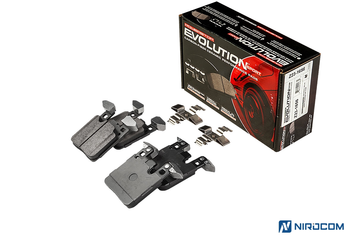 Power Stop Evolution Z23 – это керамический состав, укрепленный углеродными (карбоновыми) волокнами. На практике это высокотемпературная колодка, стойкая к износу, с повышенным коэффициентом трения