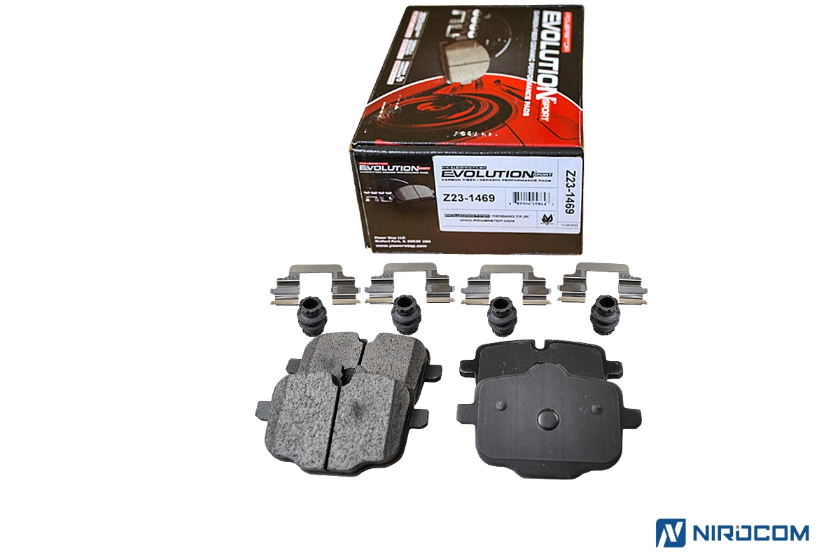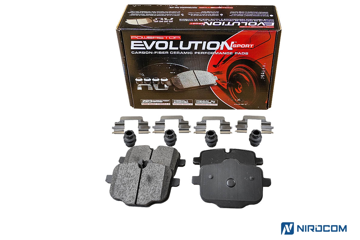 Power Stop Evolution Z23 – это керамический состав, укрепленный углеродными (карбоновыми) волокнами. На практике это высокотемпературная колодка, стойкая к износу, с повышенным коэффициентом трения