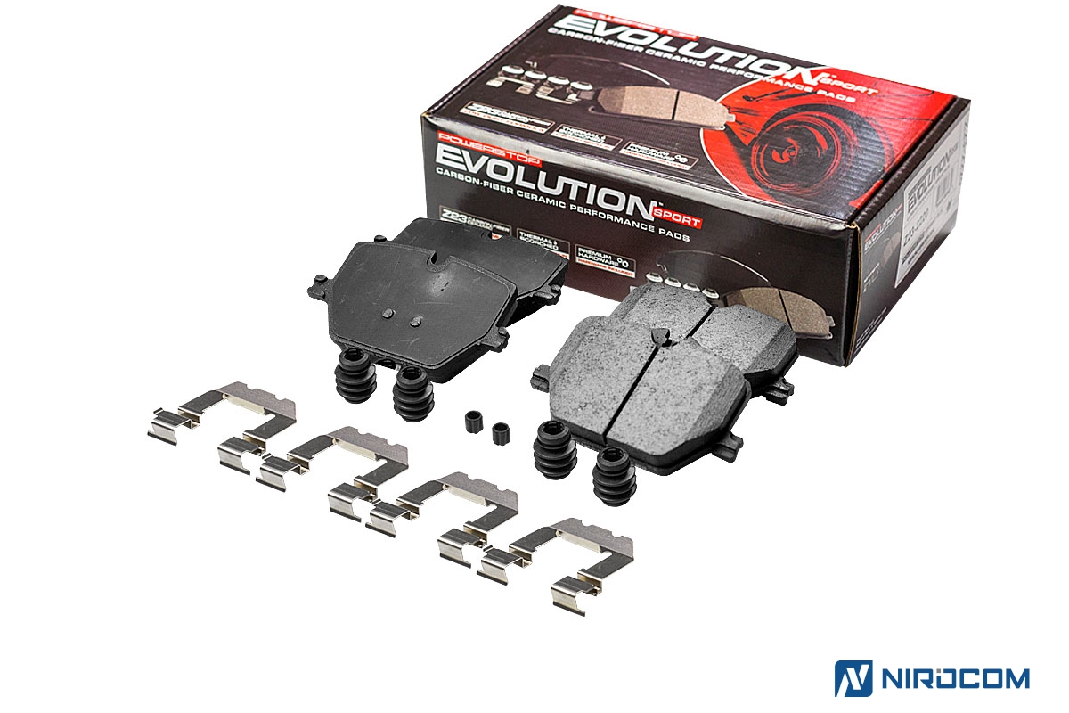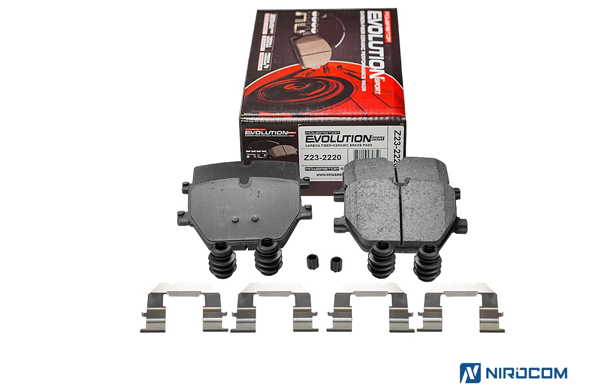 Power Stop Evolution Z23 – это керамический состав, укрепленный углеродными (карбоновыми) волокнами. На практике это высокотемпературная колодка, стойкая к износу, с повышенным коэффициентом трения