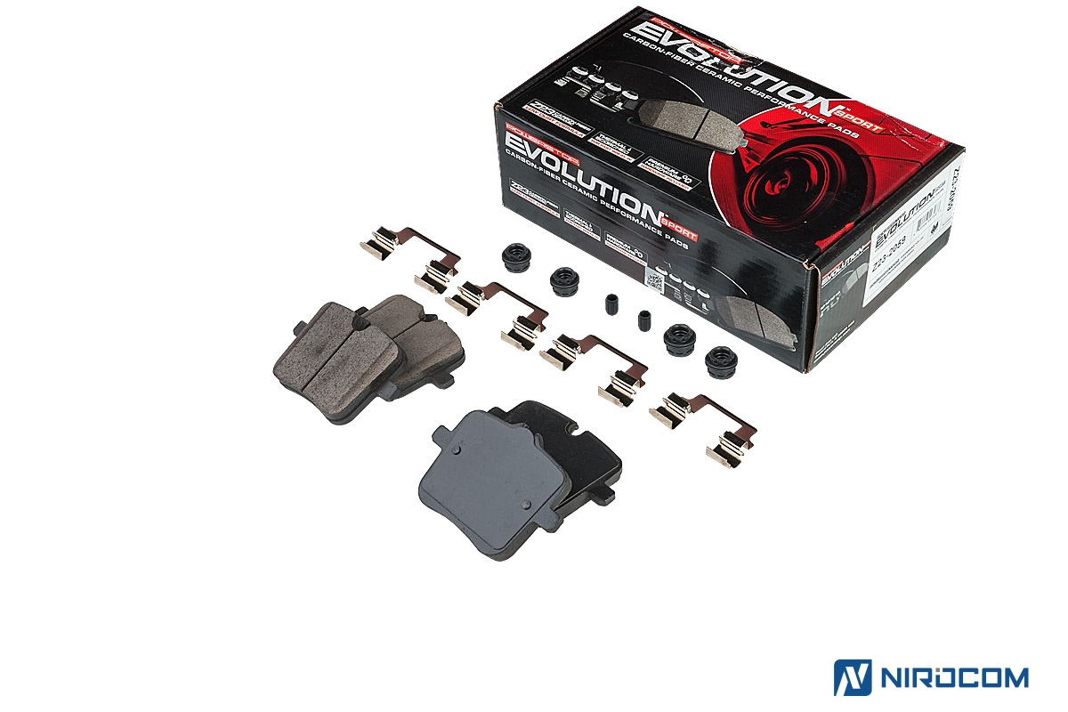 Power Stop Evolution Z23 – это керамический состав, укрепленный углеродными (карбоновыми) волокнами. На практике это высокотемпературная колодка, стойкая к износу, с повышенным коэффициентом трения
