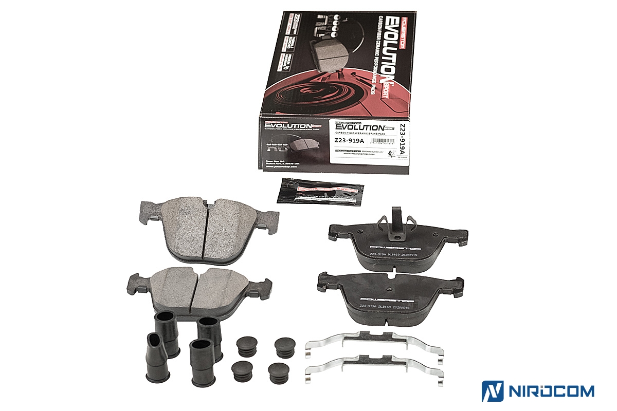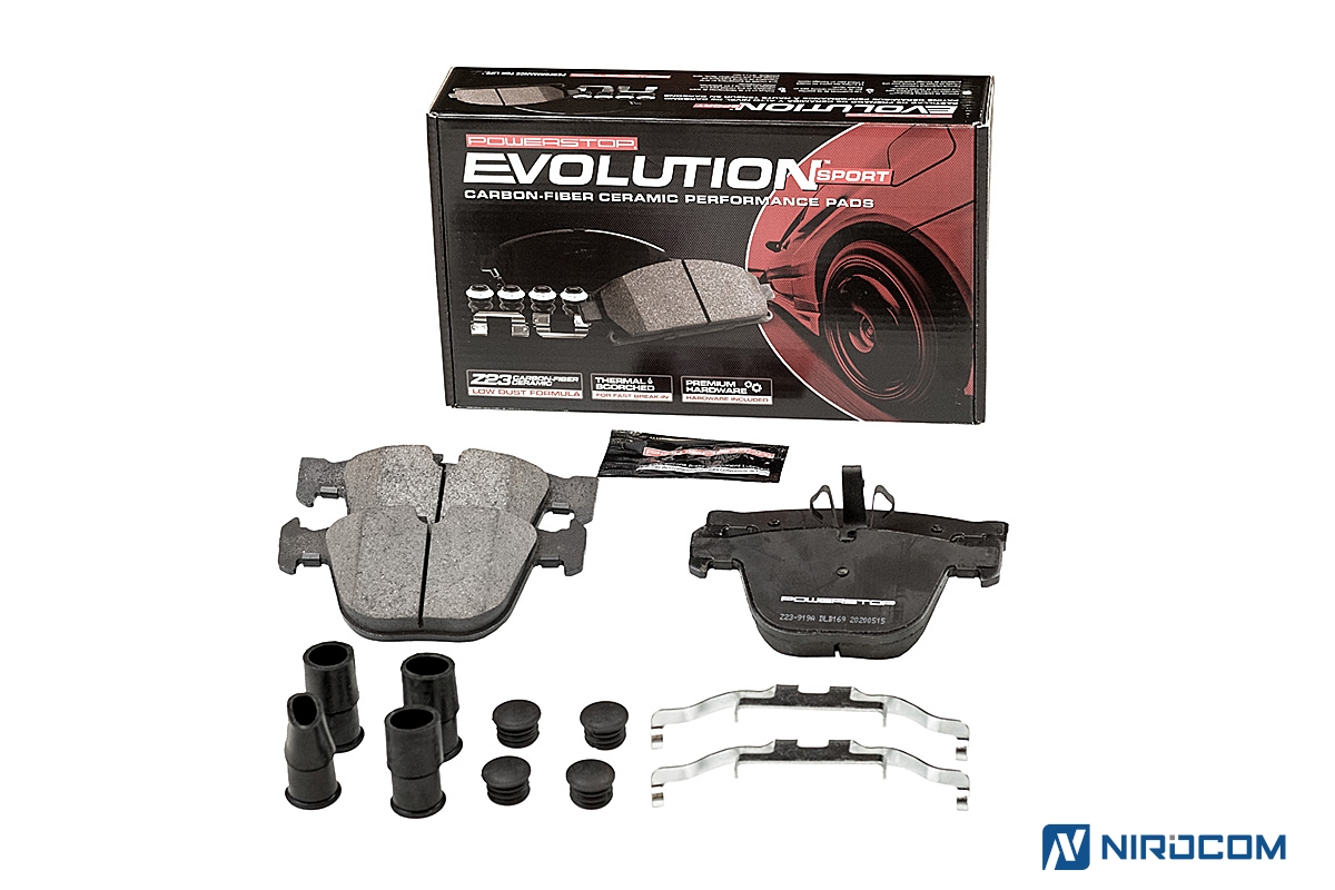 Power Stop Evolution Z23 – это керамический состав, укрепленный углеродными (карбоновыми) волокнами. На практике это высокотемпературная колодка, стойкая к износу, с повышенным коэффициентом трения