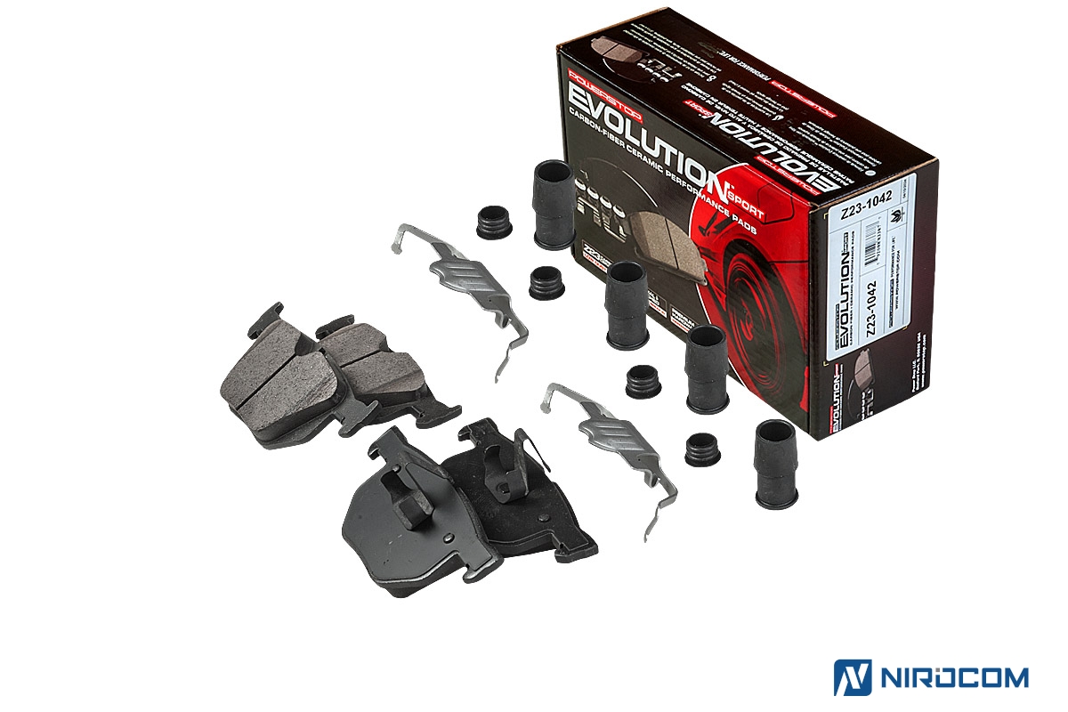 Power Stop Evolution Z23 – это керамический состав, укрепленный углеродными (карбоновыми) волокнами. На практике это высокотемпературная колодка, стойкая к износу, с повышенным коэффициентом трения