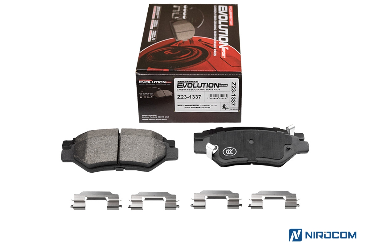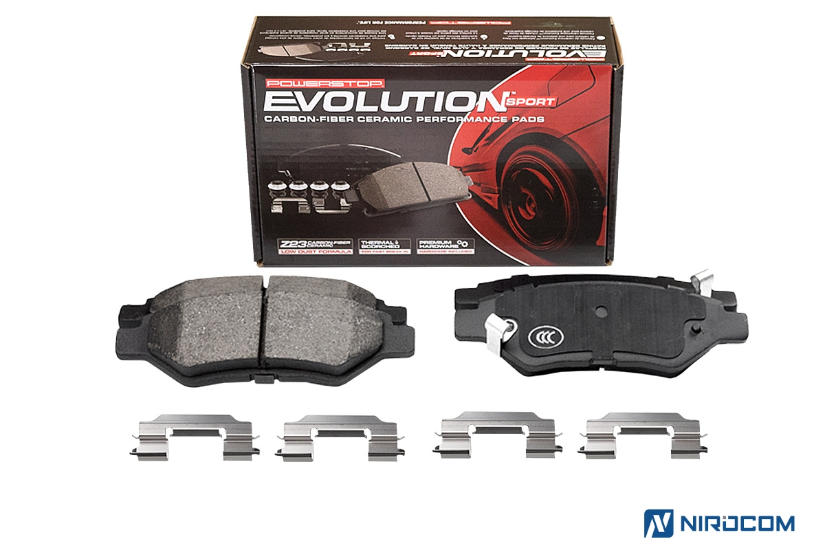 Power Stop Evolution Z23 – это керамический состав, укрепленный углеродными (карбоновыми) волокнами. На практике это высокотемпературная колодка, стойкая к износу, с повышенным коэффициентом трения