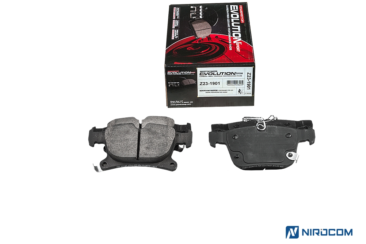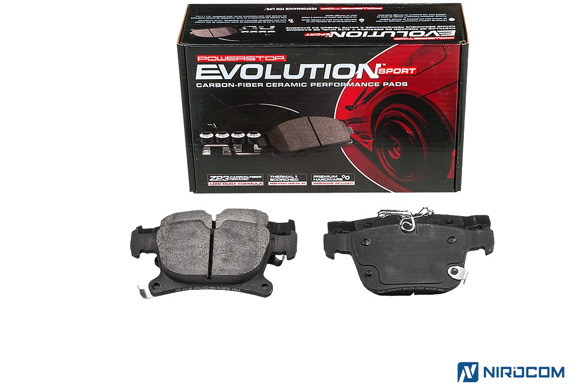 Power Stop Evolution Z23 – это керамический состав, укрепленный углеродными (карбоновыми) волокнами. На практике это высокотемпературная колодка, стойкая к износу, с повышенным коэффициентом трения