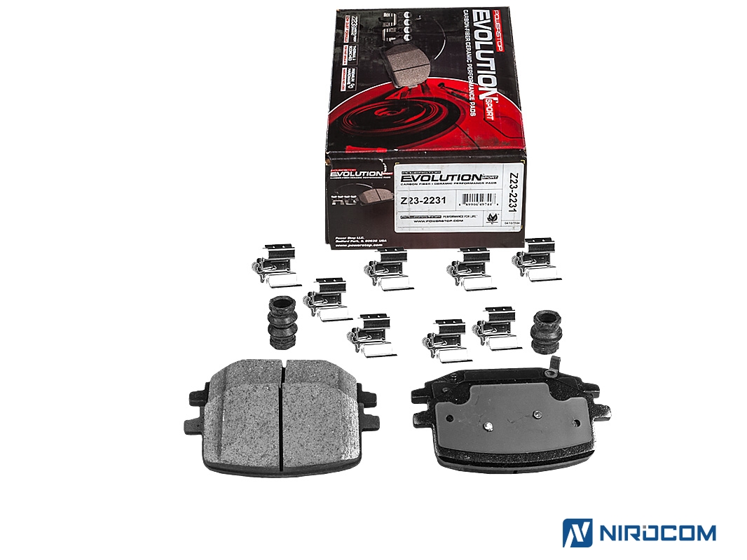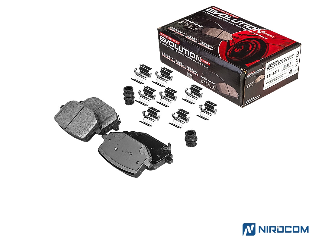 Power Stop Evolution Z23 – это керамический состав, укрепленный углеродными (карбоновыми) волокнами. На практике это высокотемпературная колодка, стойкая к износу, с повышенным коэффициентом трения