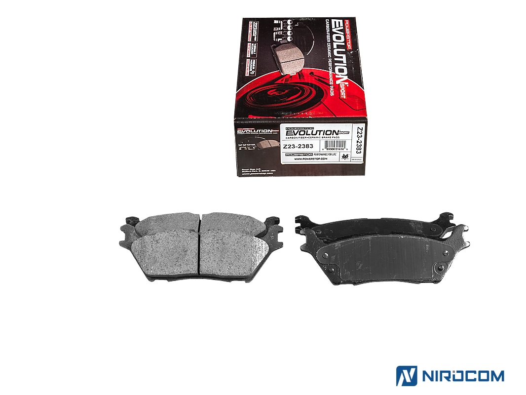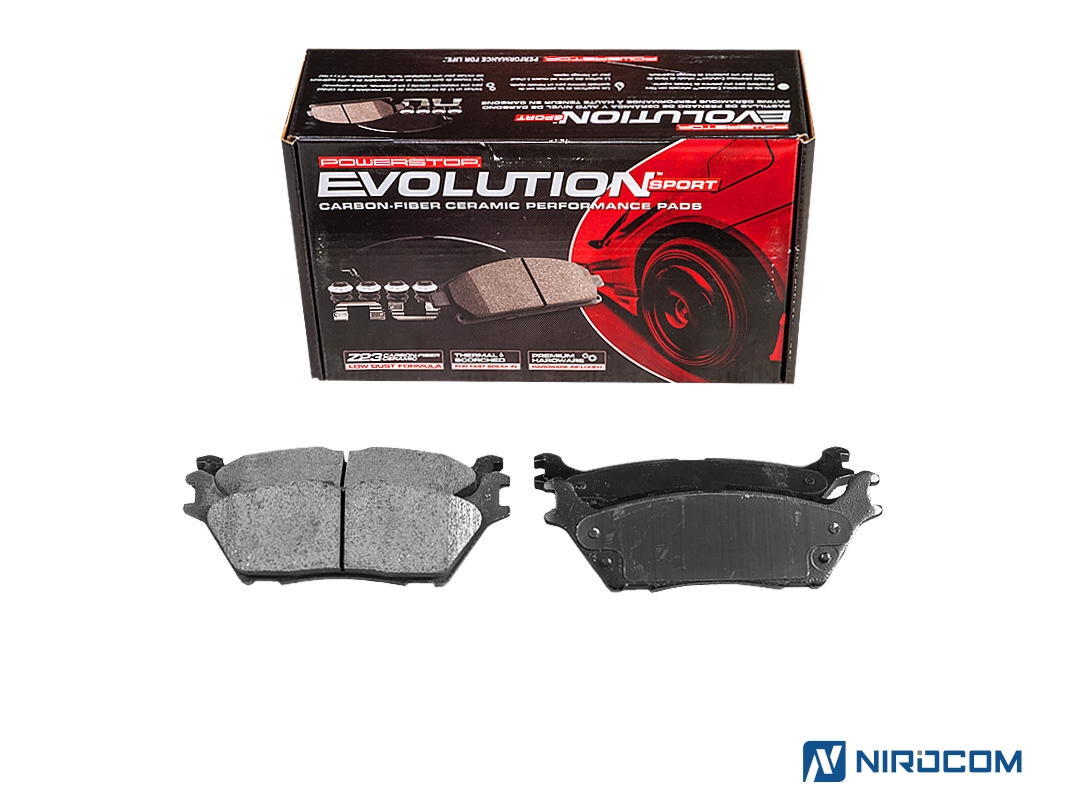 Power Stop Evolution Z23 – это керамический состав, укрепленный углеродными (карбоновыми) волокнами. На практике это высокотемпературная колодка, стойкая к износу, с повышенным коэффициентом трения