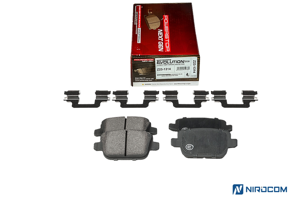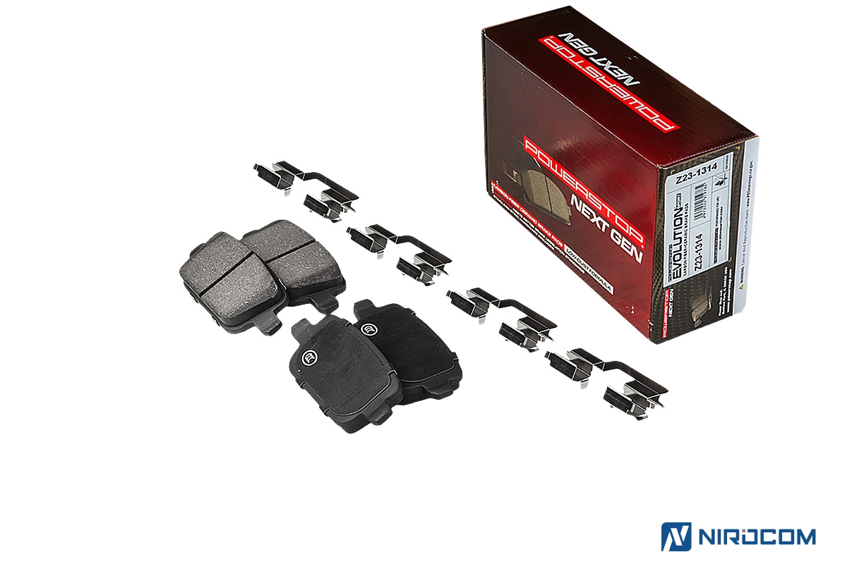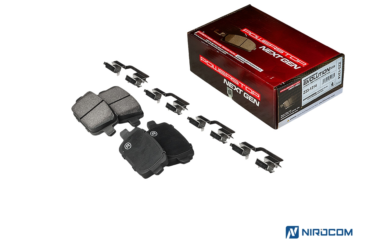 Серия колодок Z23 для любителей активной езды, желающих получить максимальную отдачу от своего автомобиля, не жертвуя повседневной управляемостью. Эти колодки работают при еще более высоких температурах (по сравнению с колодками Evolution Z17). Также был увеличен коэффициент трения, что дает возможность использовать эти колодки на стоковых тормозных суппортах даже при существенном увеличении мощности двигателя. PowerStop Evolution Z23 – это керамический состав, укрепленный углеродными (карбоновыми) волокнами. На практике это высокотемпературная колодка, стойкая к износу с повышенным коэффициентом трения. Колодки серии Z23 относятся к классу "улица/трек", в то время как Z17 – "уличная" колодка. Иными словами, Z23 PowerStop способна легко переварить нагрев до 660С, а также показать более стабильный коэффициент трения – класс FG (0,46-0,55). У колодок серии Z17 класс трения FF (0,36-0,45).