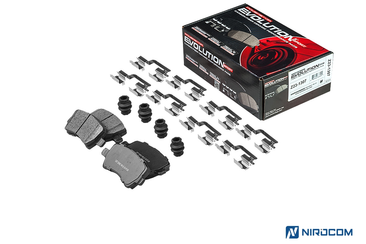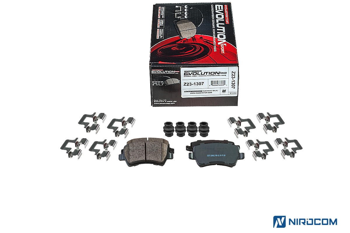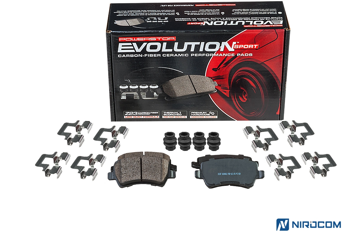 Серия колодок Z23 для любителей активной езды, желающих получить максимальную отдачу от своего автомобиля, не жертвуя повседневной управляемостью. Эти колодки работают при еще более высоких температурах (по сравнению с колодками Evolution Z17). Также был увеличен коэффициент трения, что дает возможность использовать эти колодки на стоковых тормозных суппортах даже при существенном увеличении мощности двигателя. PowerStop Evolution Z23 – это керамический состав, укрепленный углеродными (карбоновыми) волокнами. На практике это высокотемпературная колодка, стойкая к износу с повышенным коэффициентом трения. Колодки серии Z23 относятся к классу "улица/трек", в то время как Z17 – "уличная" колодка. Иными словами, Z23 PowerStop способна легко переварить нагрев до 660С, а также показать более стабильный коэффициент трения – класс FG (0,46-0,55). У колодок серии Z17 класс трения FF (0,36-0,45).