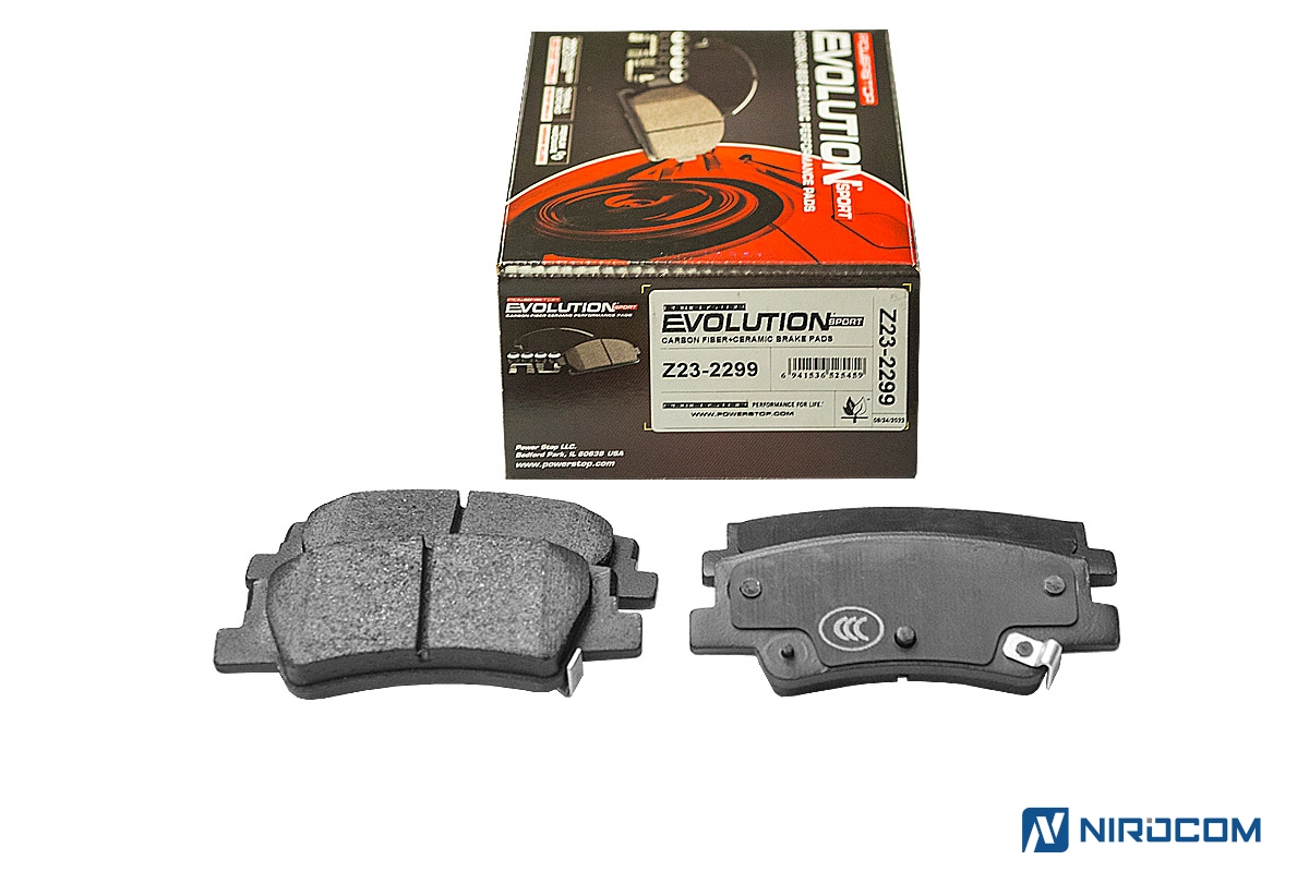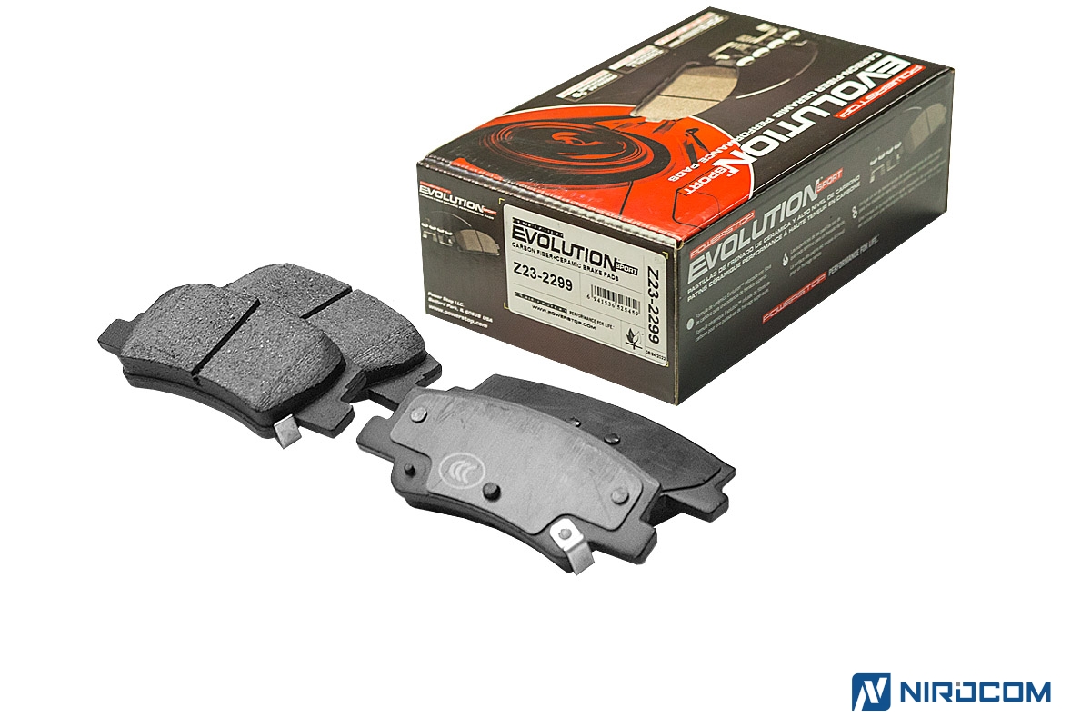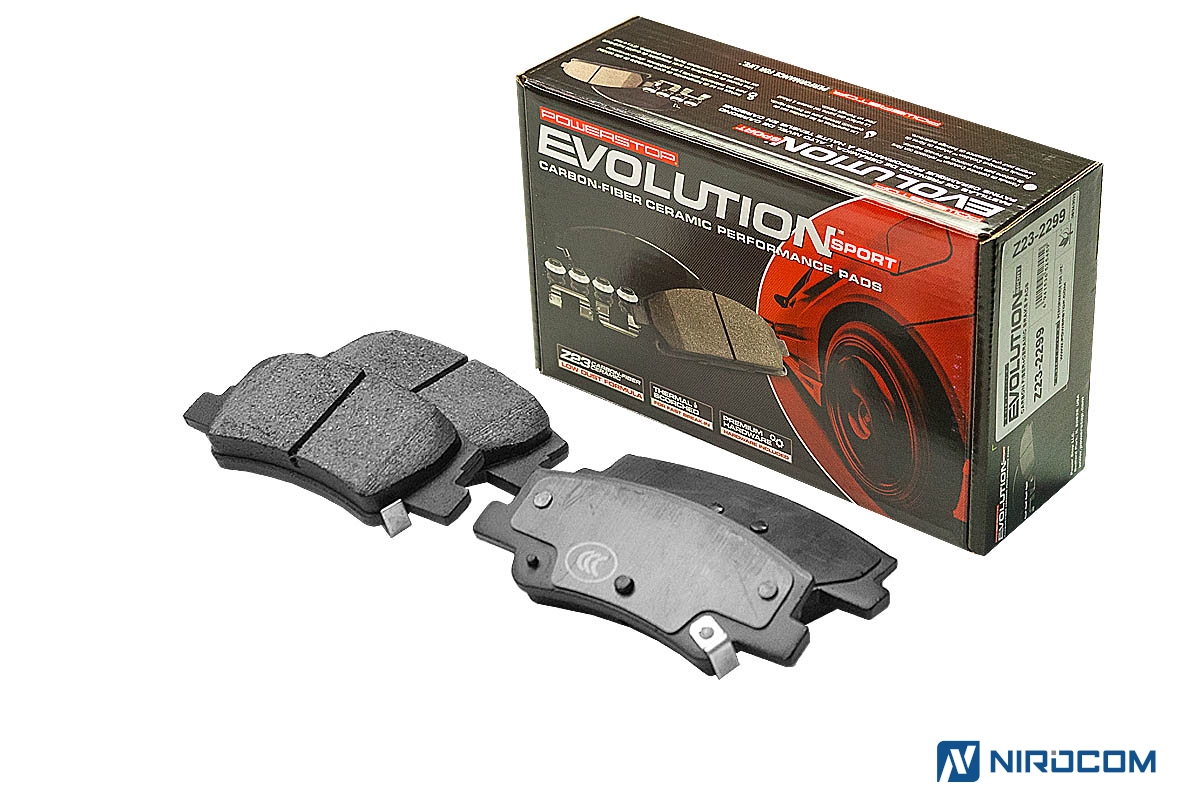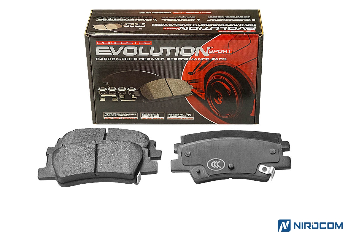 Power Stop Evolution Z23 – это керамический состав, укрепленный углеродными (карбоновыми) волокнами. На практике это высокотемпературная колодка, стойкая к износу, с повышенным коэффициентом трения