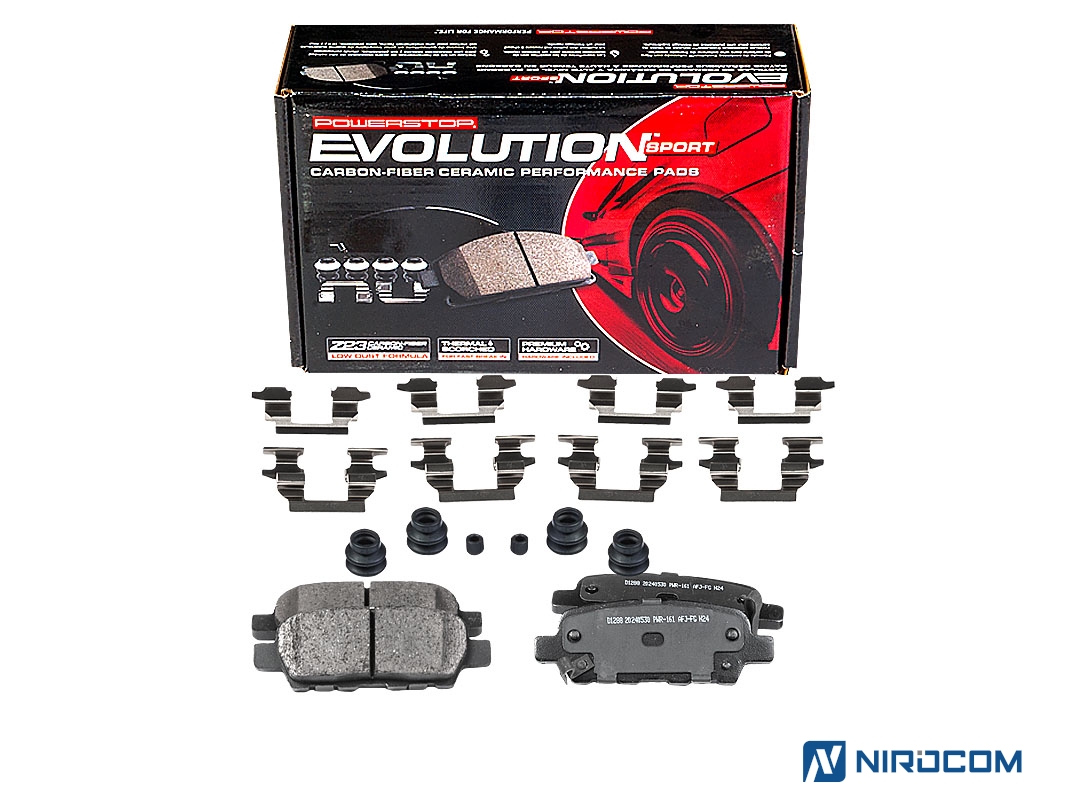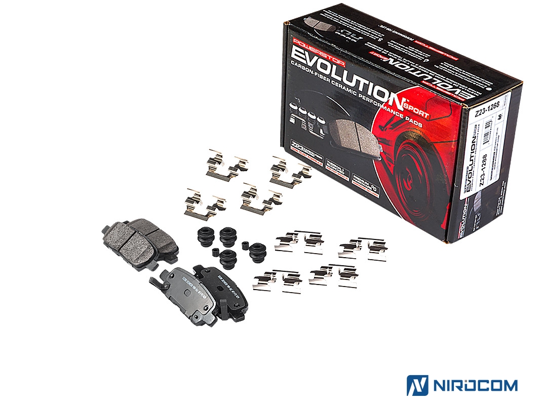 Серия колодок Z23 для любителей активной езды, желающих получить максимальную отдачу от своего автомобиля, не жертвуя повседневной управляемостью. Эти колодки работают при еще более высоких температурах (по сравнению с колодками Evolution Z17). Также был увеличен коэффициент трения, что дает возможность использовать эти колодки на стоковых тормозных суппортах даже при существенном увеличении мощности двигателя. PowerStop Evolution Z23 – это керамический состав, укрепленный углеродными (карбоновыми) волокнами. На практике это высокотемпературная колодка, стойкая к износу с повышенным коэффициентом трения. Колодки серии Z23 относятся к классу "улица/трек", в то время как Z17 – "уличная" колодка. Иными словами, Z23 PowerStop способна легко переварить нагрев до 660С, а также показать более стабильный коэффициент трения – класс FG (0,46-0,55). У колодок серии Z17 класс трения FF (0,36-0,45).