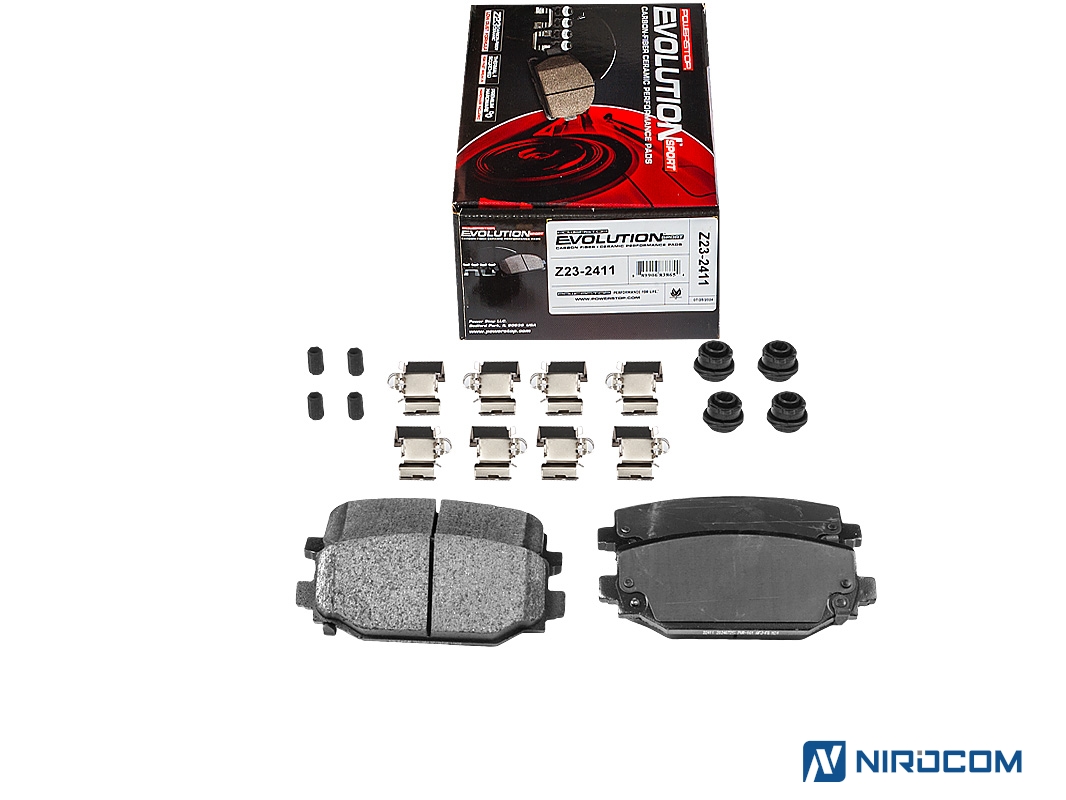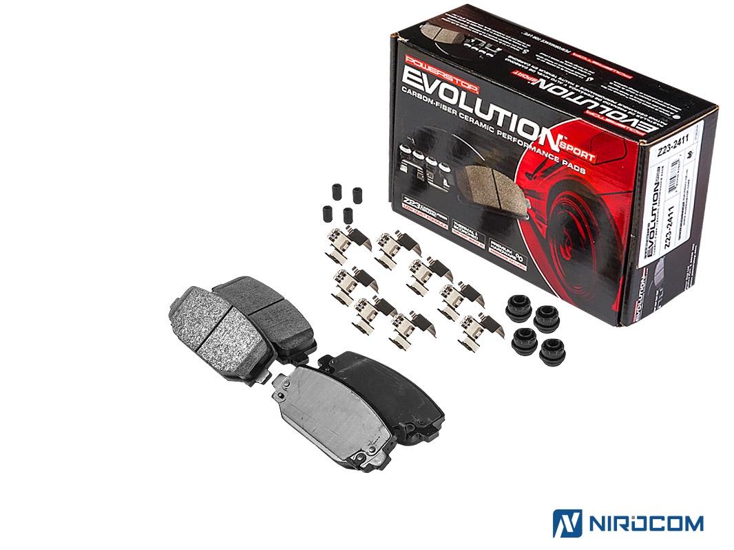 Power Stop Evolution Z23 – это керамический состав, укрепленный углеродными (карбоновыми) волокнами. На практике это высокотемпературная колодка, стойкая к износу, с повышенным коэффициентом трения