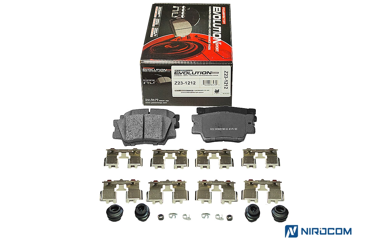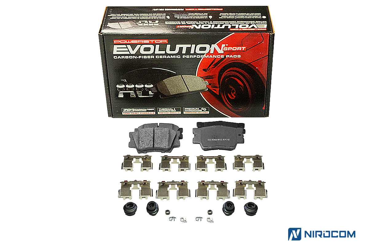 Power Stop Evolution Z23 – это керамический состав, укрепленный углеродными (карбоновыми) волокнами. На практике это высокотемпературная колодка, стойкая к износу, с повышенным коэффициентом трения