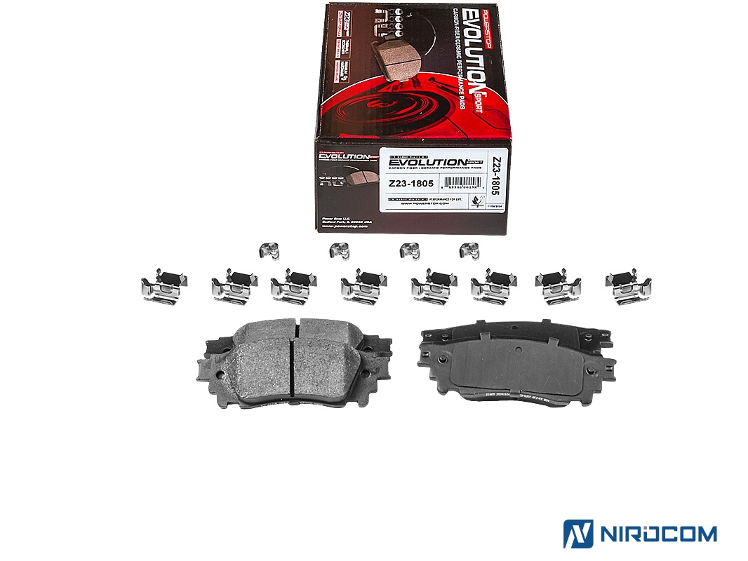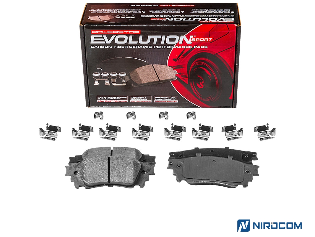 Power Stop Evolution Z23 – это керамический состав, укрепленный углеродными (карбоновыми) волокнами. На практике это высокотемпературная колодка, стойкая к износу, с повышенным коэффициентом трения