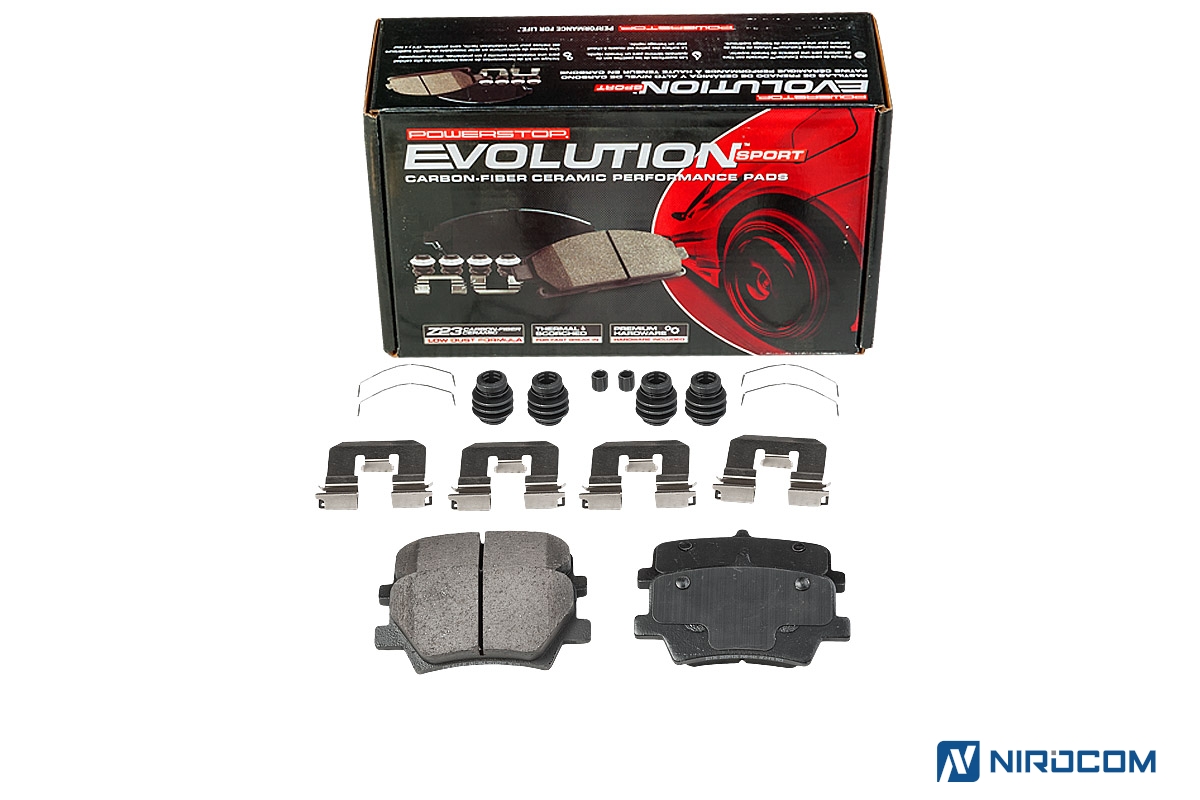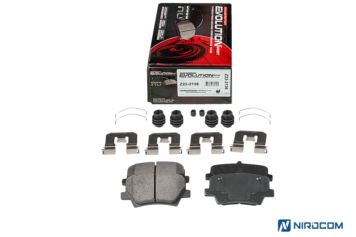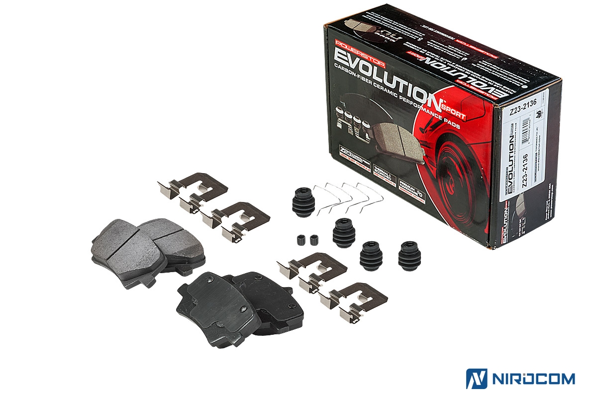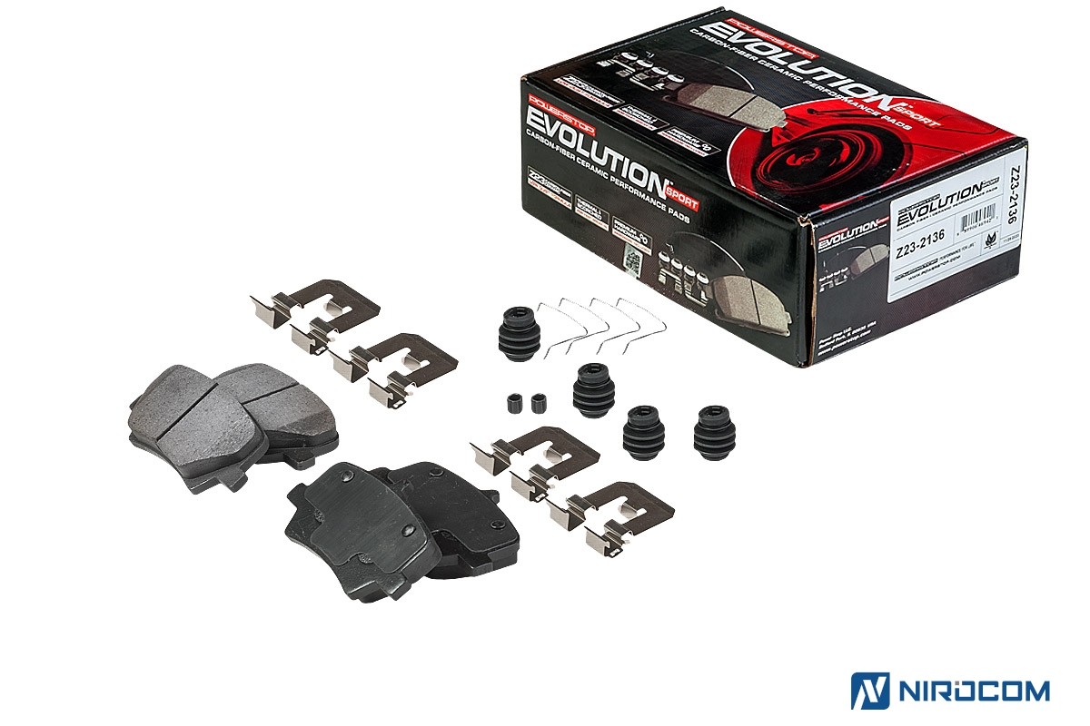 Power Stop Evolution Z23 – это керамический состав, укрепленный углеродными (карбоновыми) волокнами. На практике это высокотемпературная колодка, стойкая к износу, с повышенным коэффициентом трения