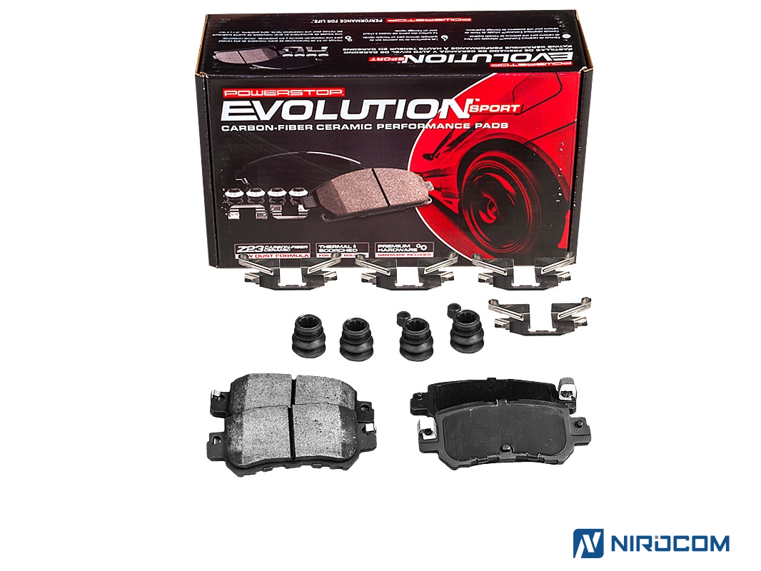 Power Stop Evolution Z23 – это керамический состав, укрепленный углеродными (карбоновыми) волокнами. На практике это высокотемпературная колодка, стойкая к износу, с повышенным коэффициентом трения
