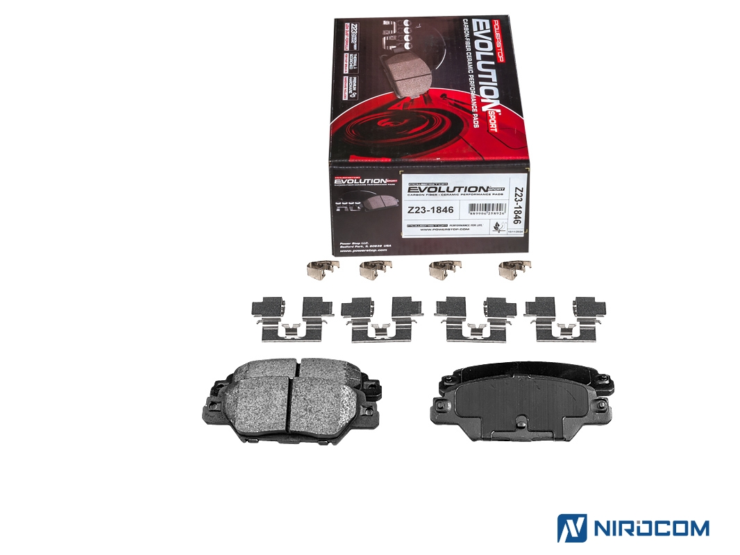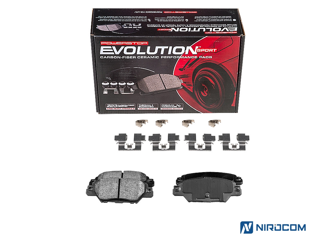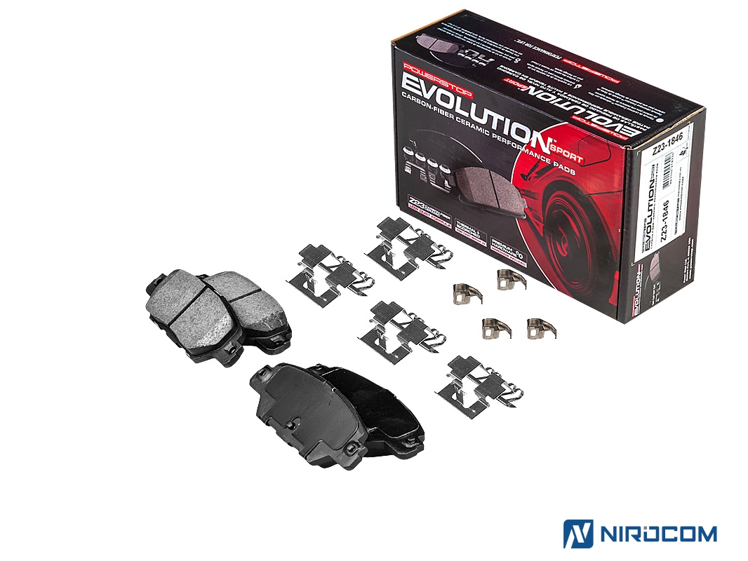 Power Stop Evolution Z23 – это керамический состав, укрепленный углеродными (карбоновыми) волокнами. На практике это высокотемпературная колодка, стойкая к износу, с повышенным коэффициентом трения