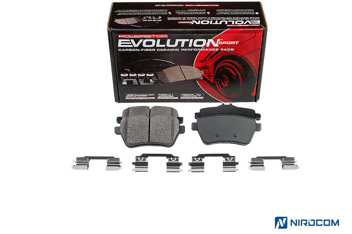Power Stop Evolution Z23 – это керамический состав, укрепленный углеродными (карбоновыми) волокнами. На практике это высокотемпературная колодка, стойкая к износу, с повышенным коэффициентом трения