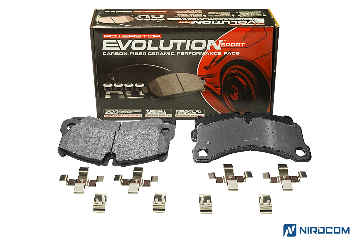 Power Stop Evolution Z23 – это керамический состав, укрепленный углеродными (карбоновыми) волокнами. На практике это высокотемпературная колодка, стойкая к износу, с повышенным коэффициентом трения