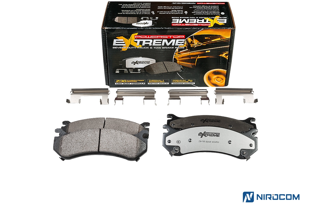 Керамические колодки с углеродными волокнами PowerStop Z36 сделаны для тяжёлых грузовиков и внедорожников. Колодки обеспечивают мощный захват, показывая высокую производительность и при этом сильно не нагреваясь. Состав колодок Z36 позволяет осуществлять торможение без лишнего шума и пыли. Коэффициент трения на 17% выше, чем у колодок OE.