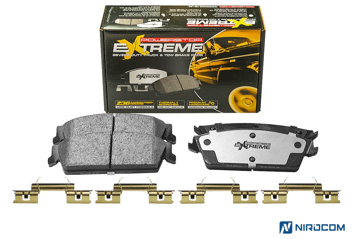 Керамические колодки с углеродными волокнами PowerStop Z36 сделаны для тяжёлых грузовиков и внедорожников. Колодки обеспечивают мощный захват, показывая высокую производительность и при этом сильно не нагреваясь. Состав колодок Z36 позволяет осуществлять торможение без лишнего шума и пыли. Коэффициент трения на 17% выше, чем у колодок OE.