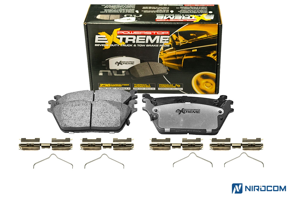 Керамические колодки с углеродными волокнами PowerStop Z36 сделаны для тяжёлых грузовиков и внедорожников. Колодки обеспечивают мощный захват, показывая высокую производительность и при этом сильно не нагреваясь. Состав колодок Z36 позволяет осуществлять торможение без лишнего шума и пыли. Коэффициент трения на 17% выше, чем у колодок OE.