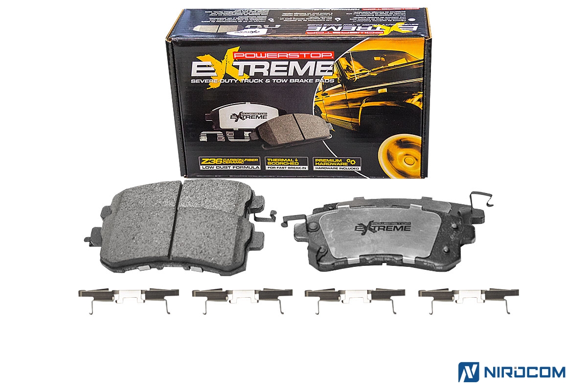 Керамические колодки с углеродными волокнами PowerStop Z36 сделаны для тяжёлых грузовиков и внедорожников. Колодки обеспечивают мощный захват, показывая высокую производительность и при этом сильно не нагреваясь. Состав колодок Z36 позволяет осуществлять торможение без лишнего шума и пыли. Коэффициент трения на 17% выше, чем у колодок OE.