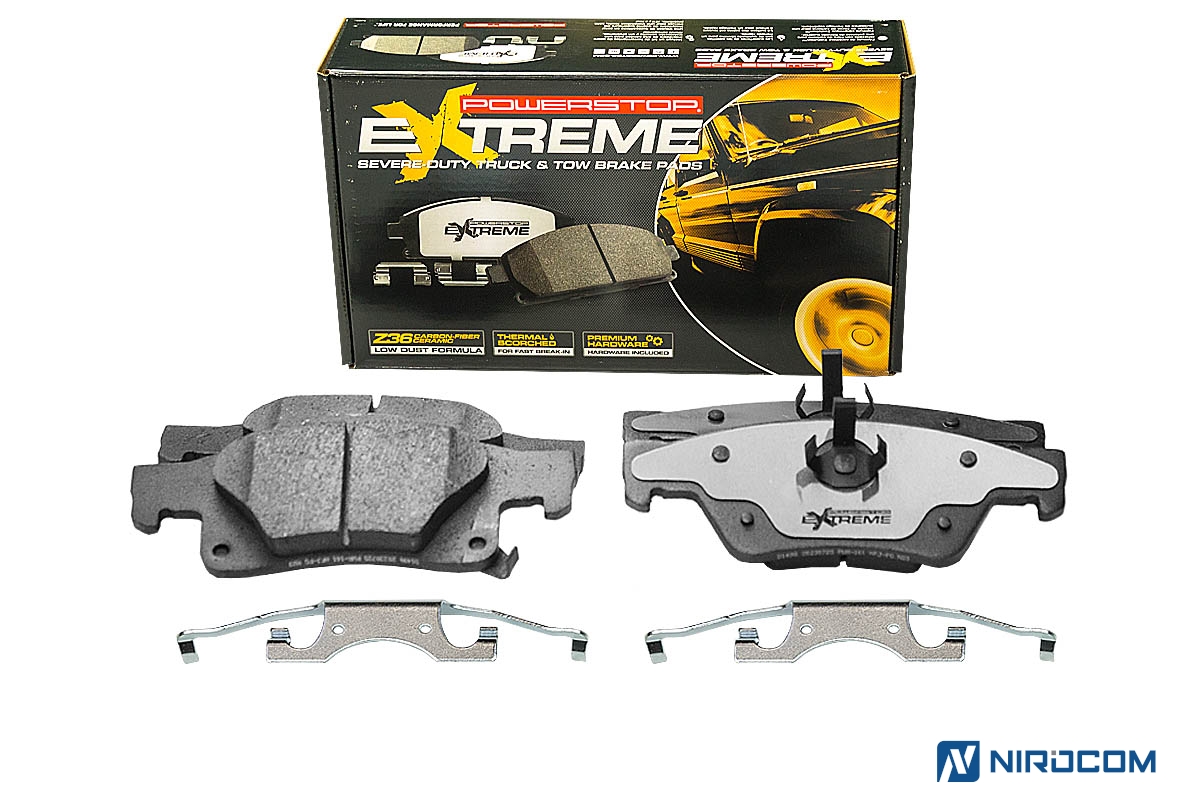 Керамические колодки с углеродными волокнами PowerStop Z36 сделаны для тяжёлых грузовиков и внедорожников. Колодки обеспечивают мощный захват, показывая высокую производительность и при этом сильно не нагреваясь. Состав колодок Z36 позволяет осуществлять торможение без лишнего шума и пыли. Коэффициент трения на 17% выше, чем у колодок OE.