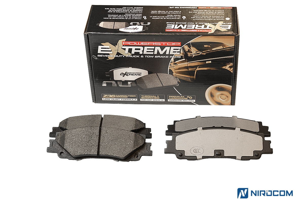 Керамические колодки с углеродными волокнами PowerStop Z36 сделаны для тяжёлых грузовиков и внедорожников. Колодки обеспечивают мощный захват, показывая высокую производительность и при этом сильно не нагреваясь. Состав колодок Z36 позволяет осуществлять торможение без лишнего шума и пыли. Коэффициент трения на 17% выше, чем у колодок OE.